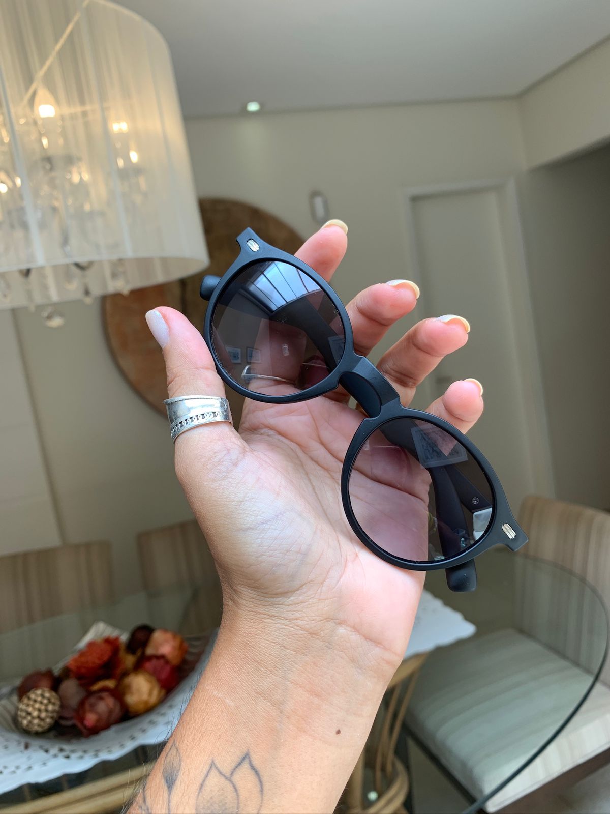 Armação em Acetato preto fosco, lente degradê.