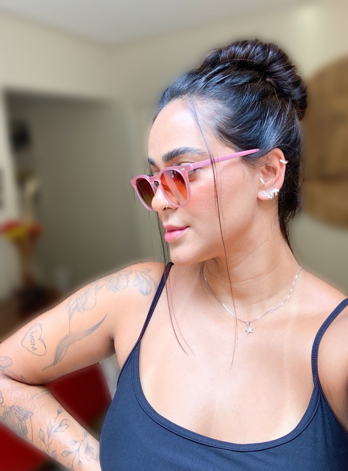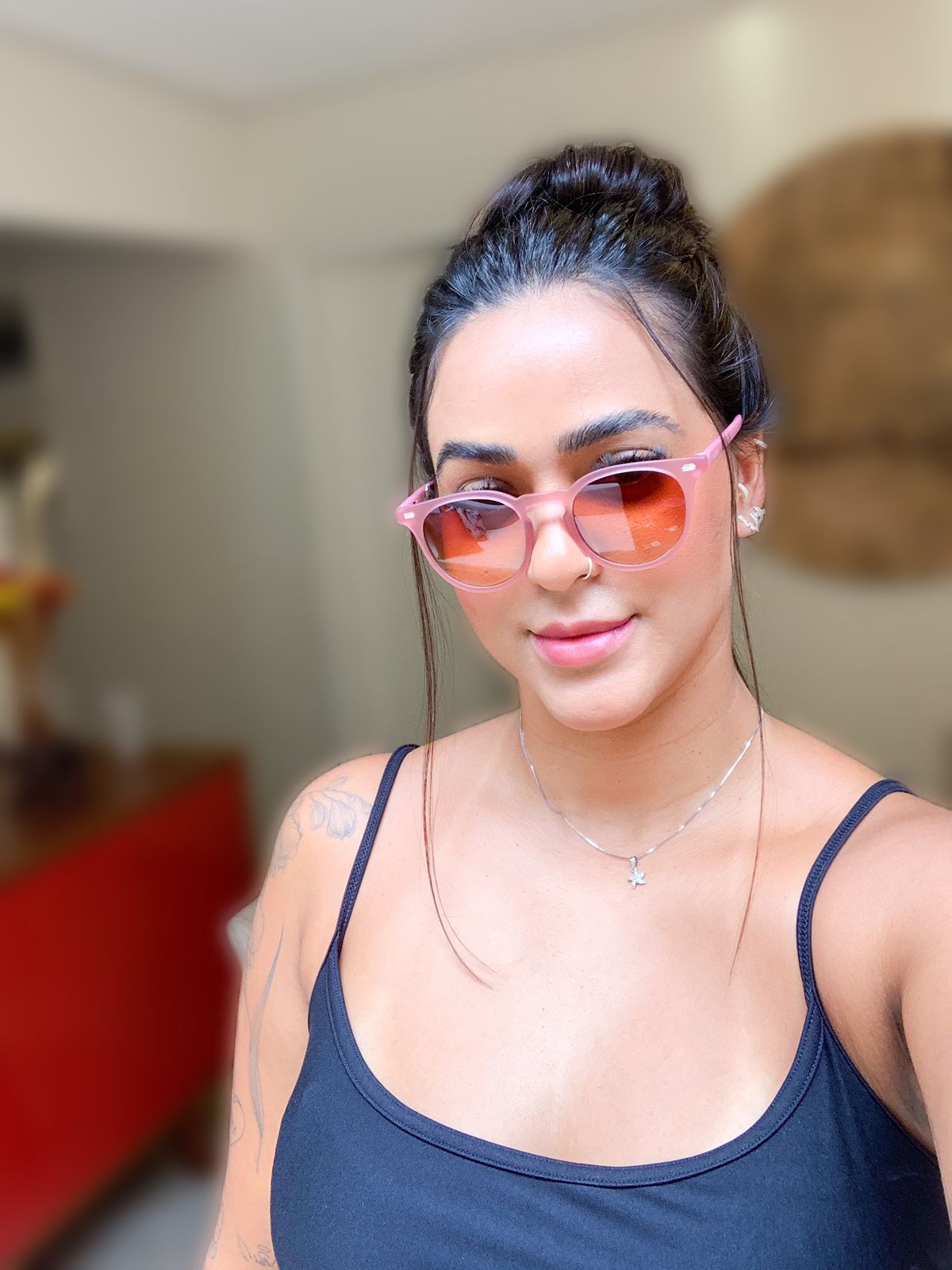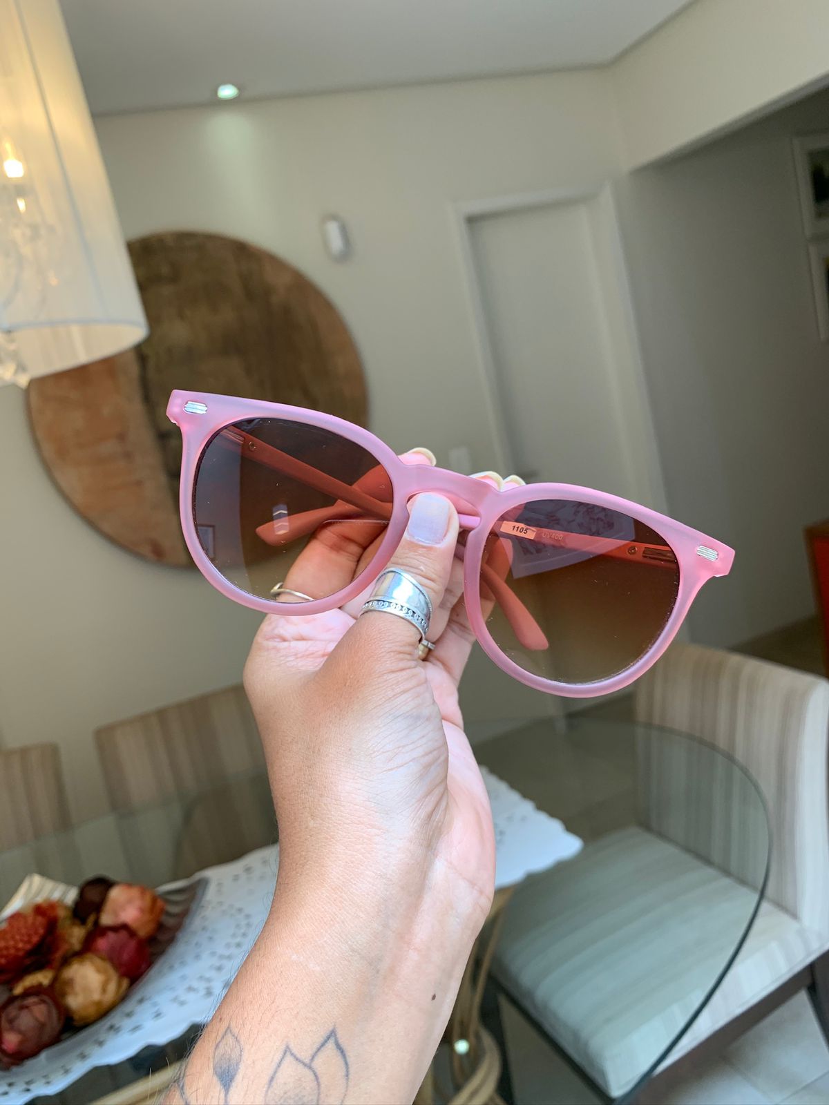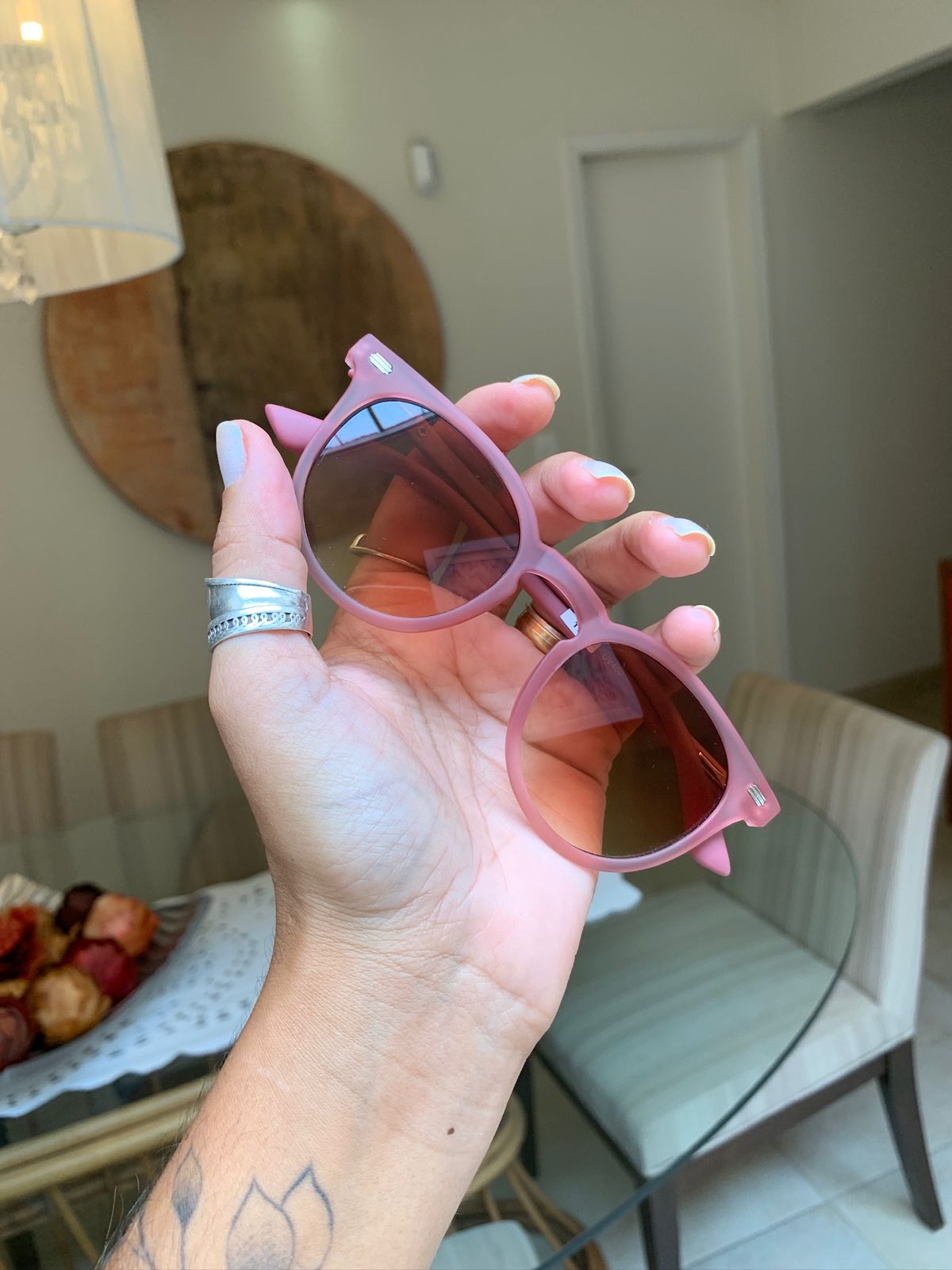 Armação em Acetato rosa queimado com leve transparência, lente degradê.