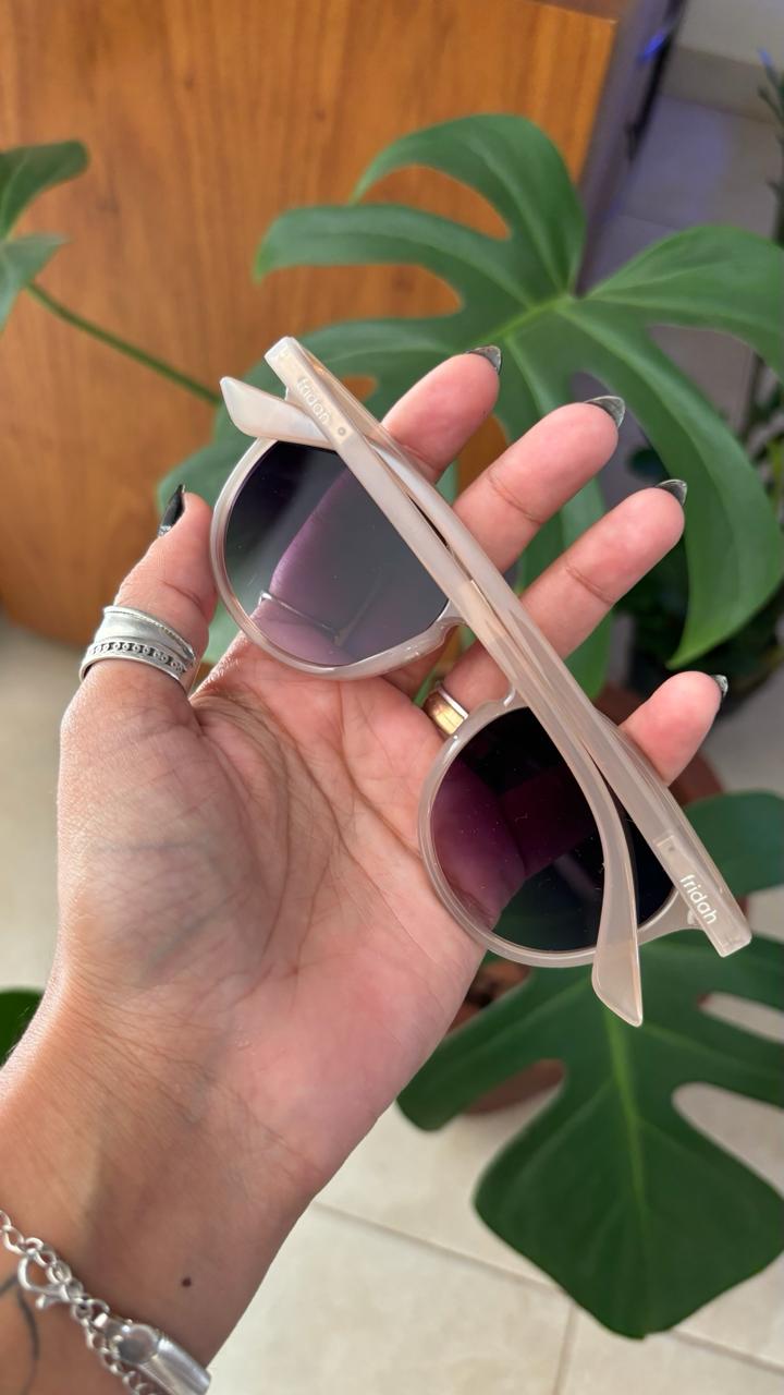 Armação em Acetato nue com leve transparência, lente degradê.