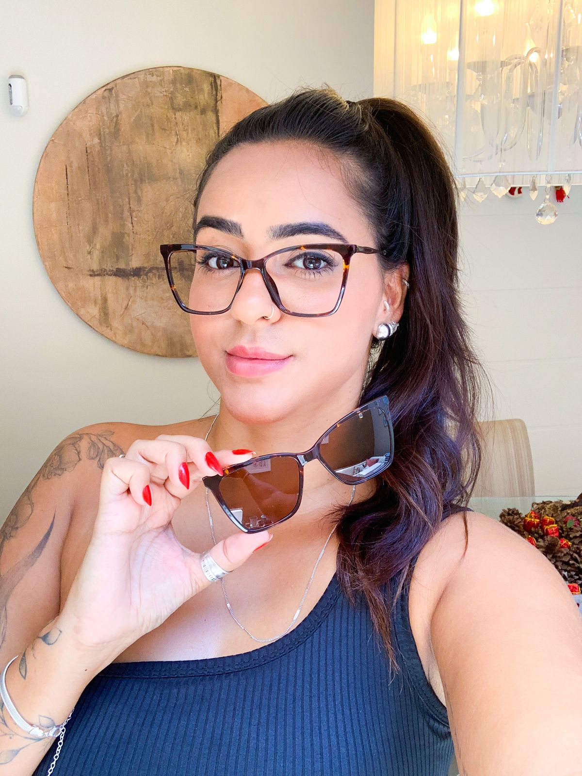 Armação para grau, acompanha lente solar removível com proteção UV400.
