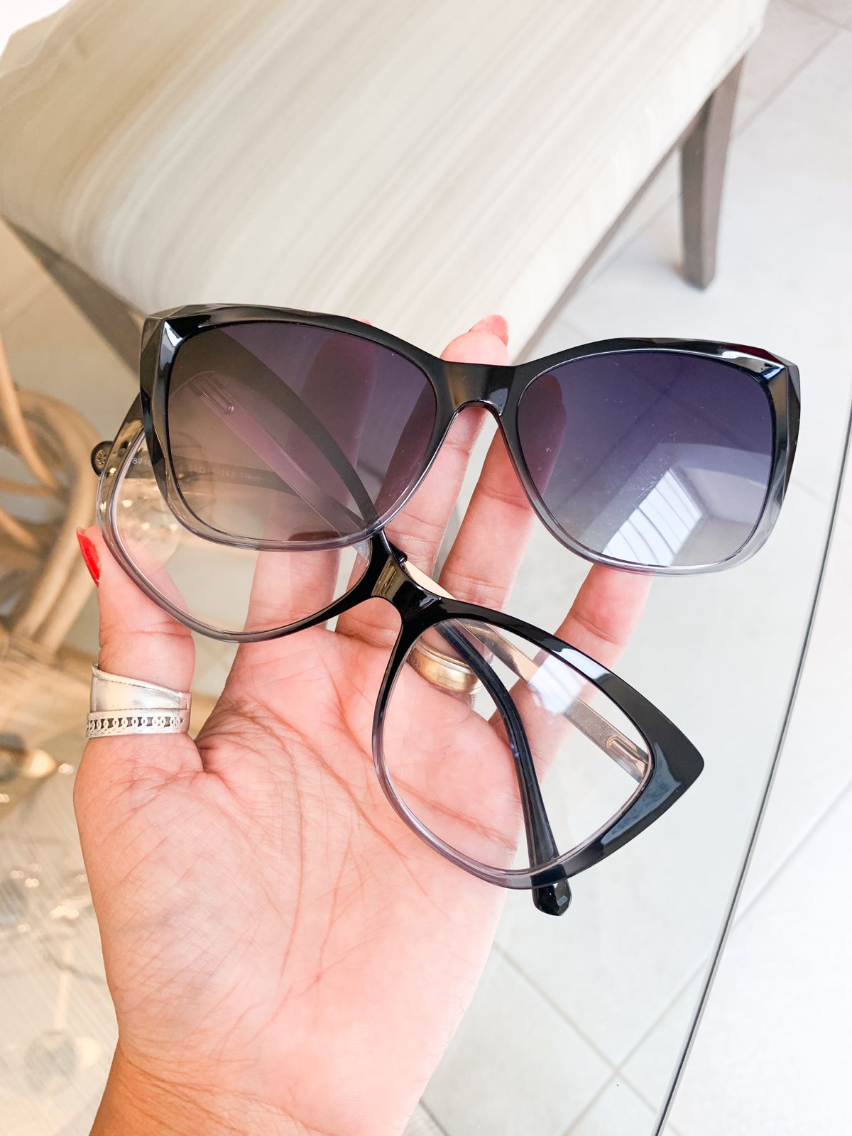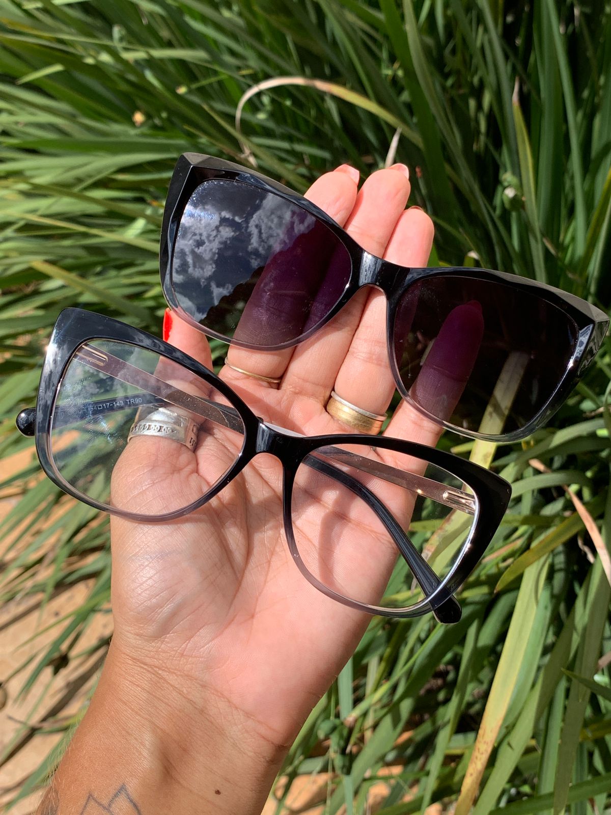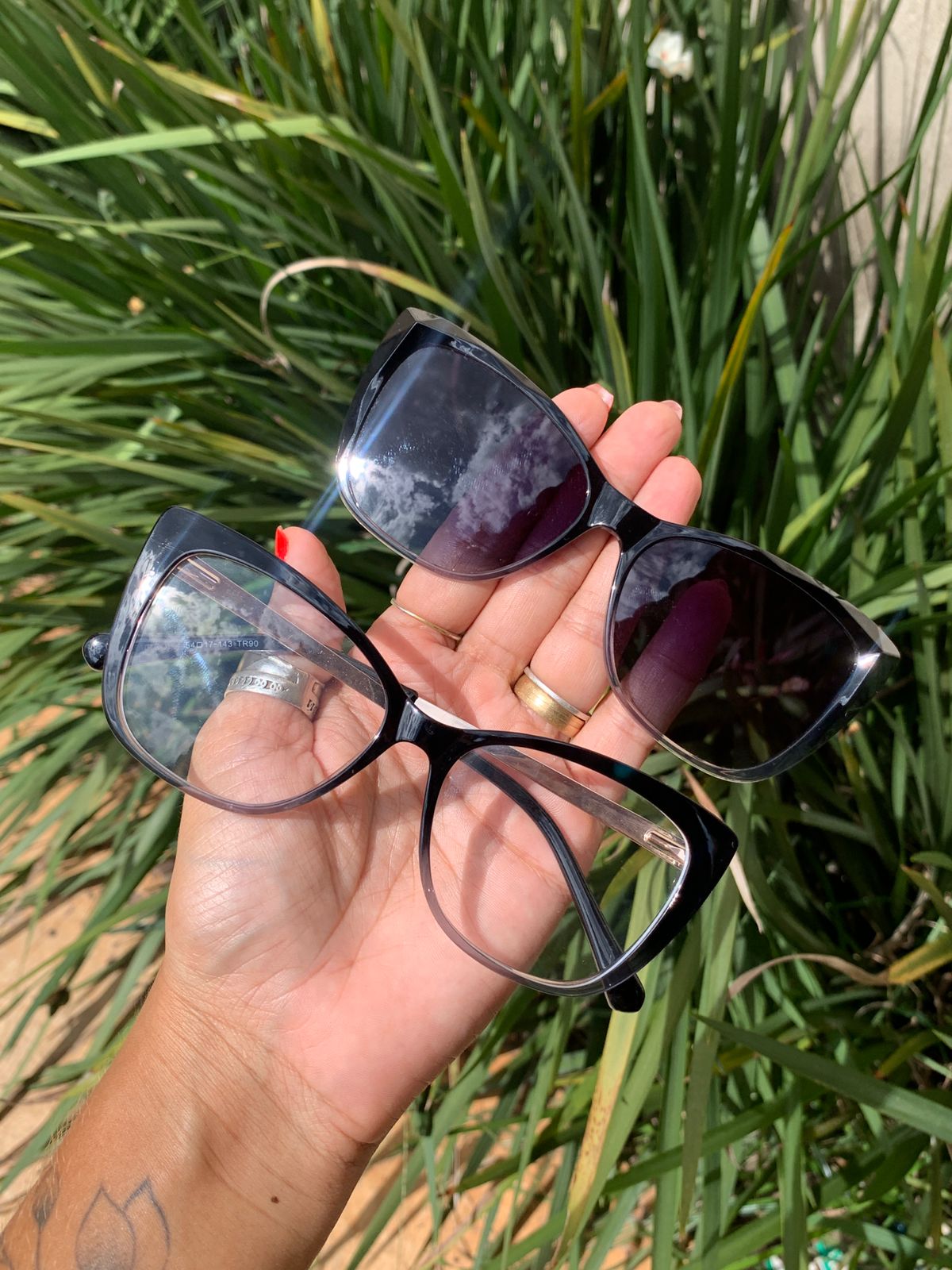 Armação para grau, acompanha lente solar removível com proteção UV400.