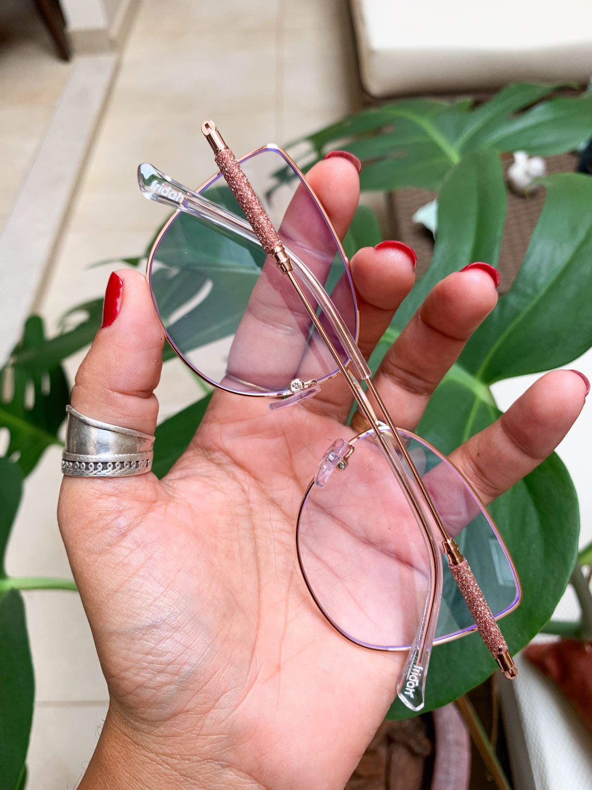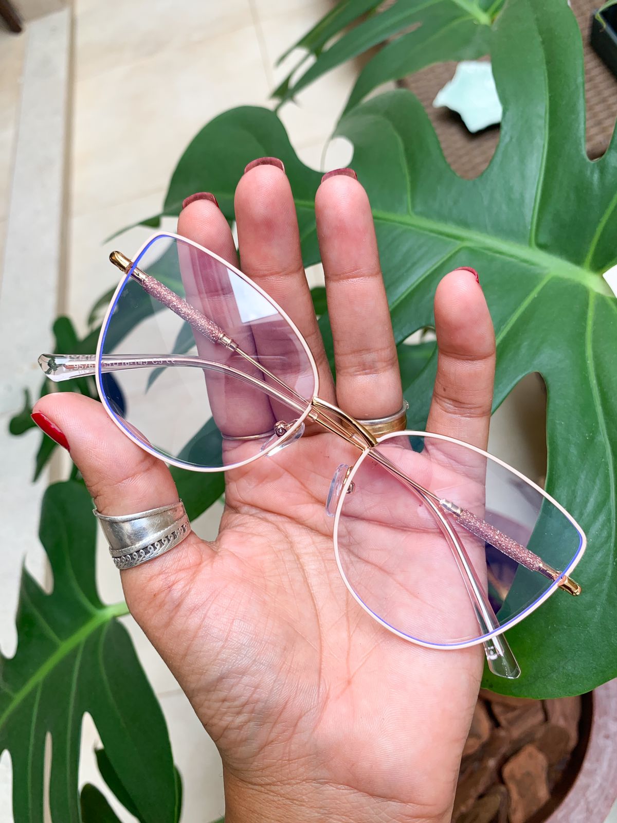 Armação em Metal, Bege com haste Dourada e detalhes em Glitter