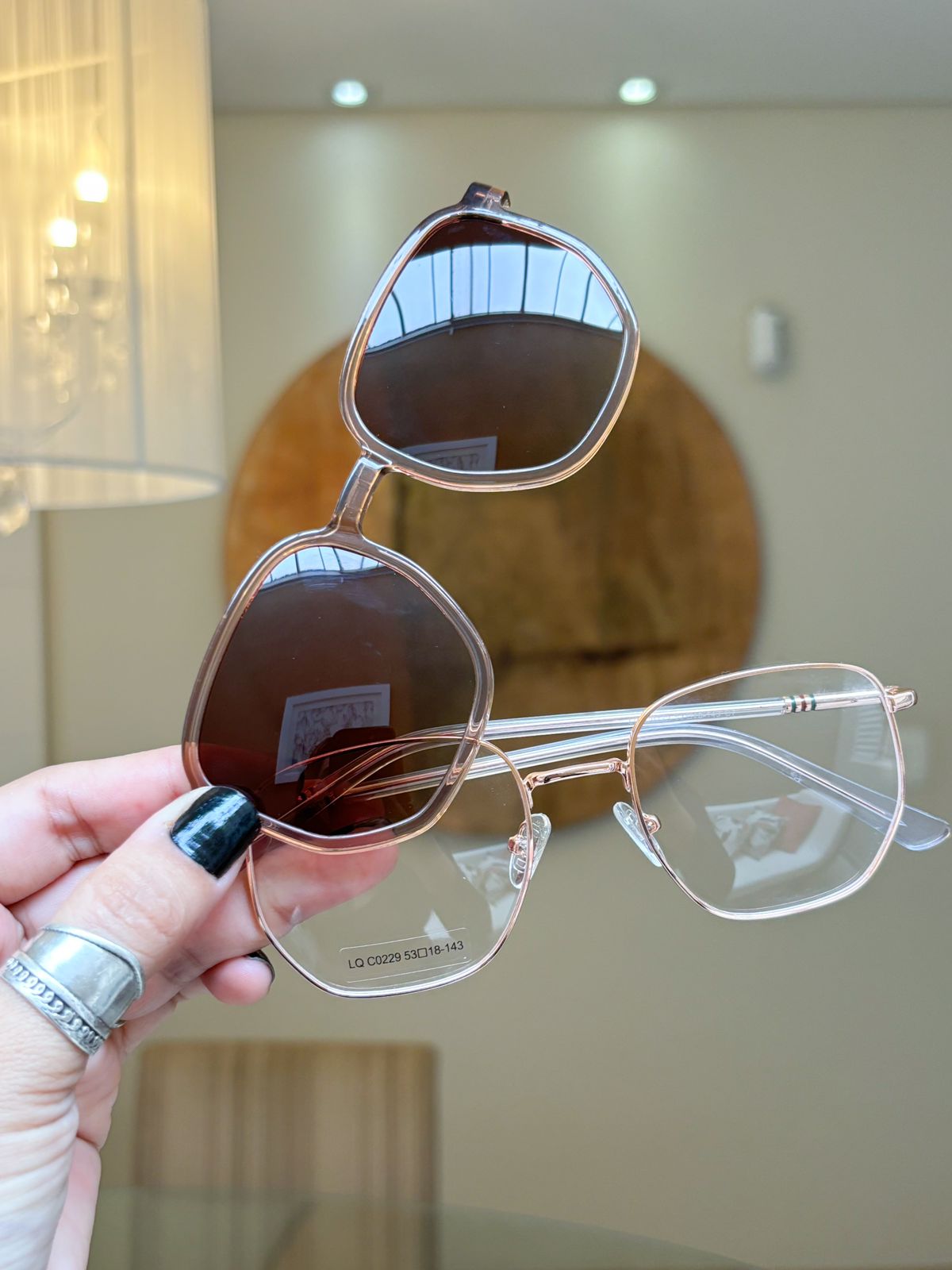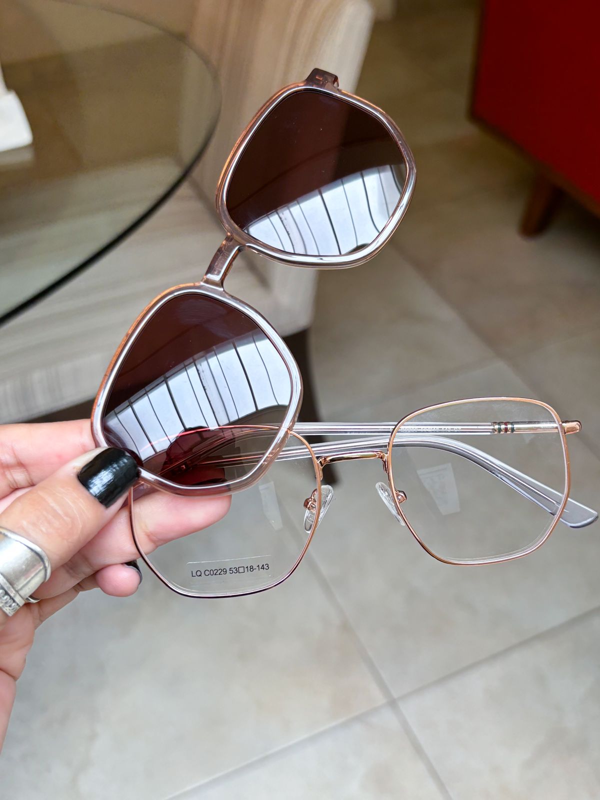 Armação para grau, acompanha lente solar removível com proteção UV400.