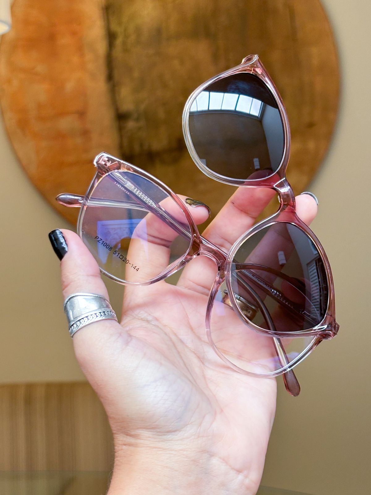 Armação para grau, acompanha lente solar removível com proteção UV400.