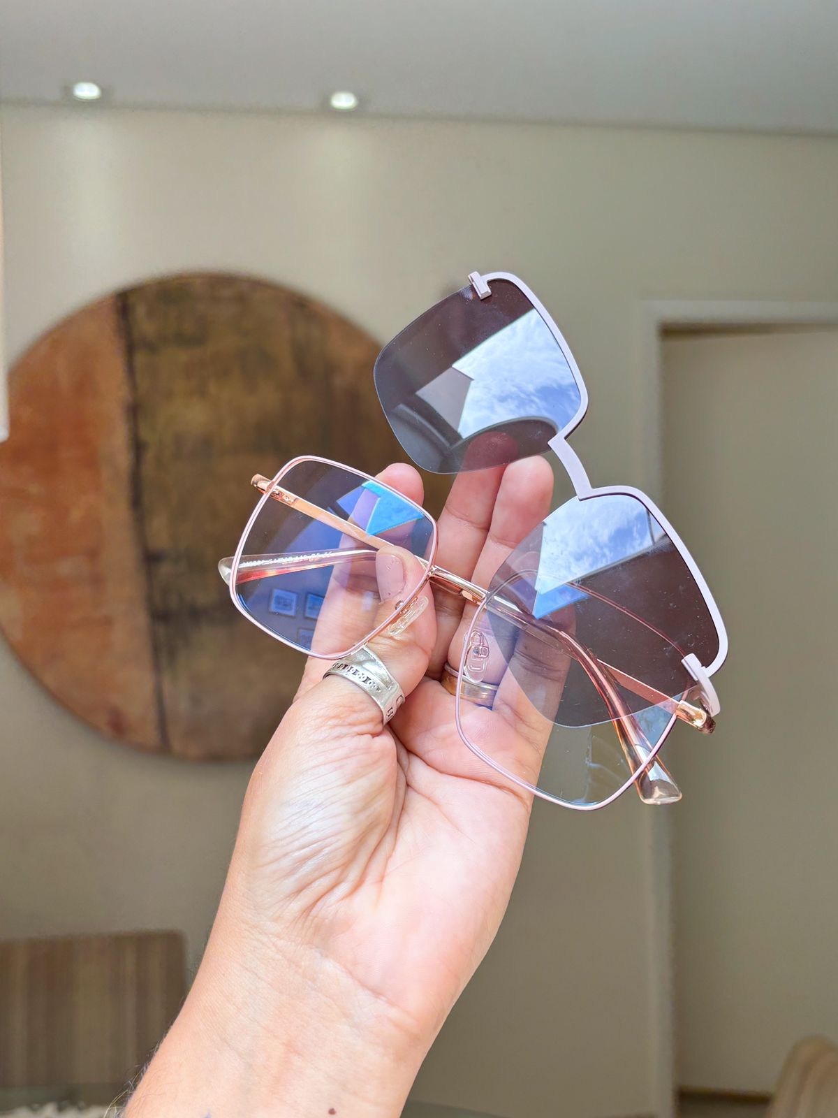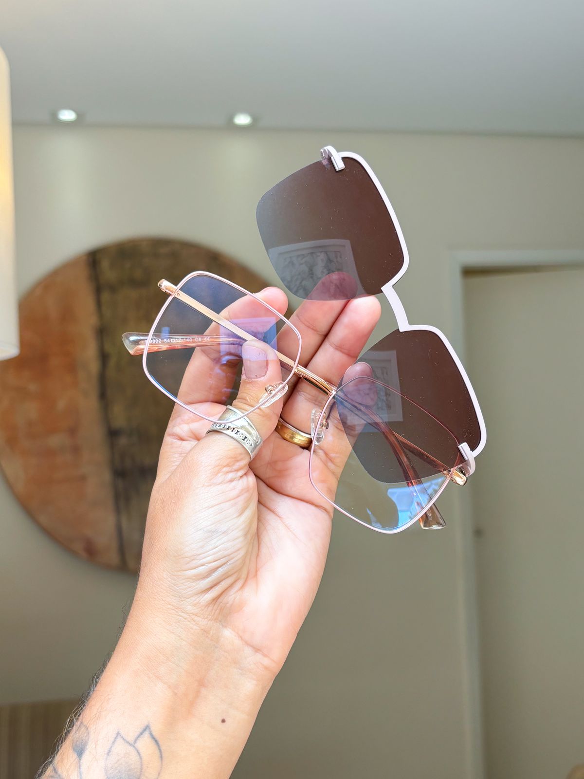 Armação para grau, acompanha lente solar removível com proteção UV400.