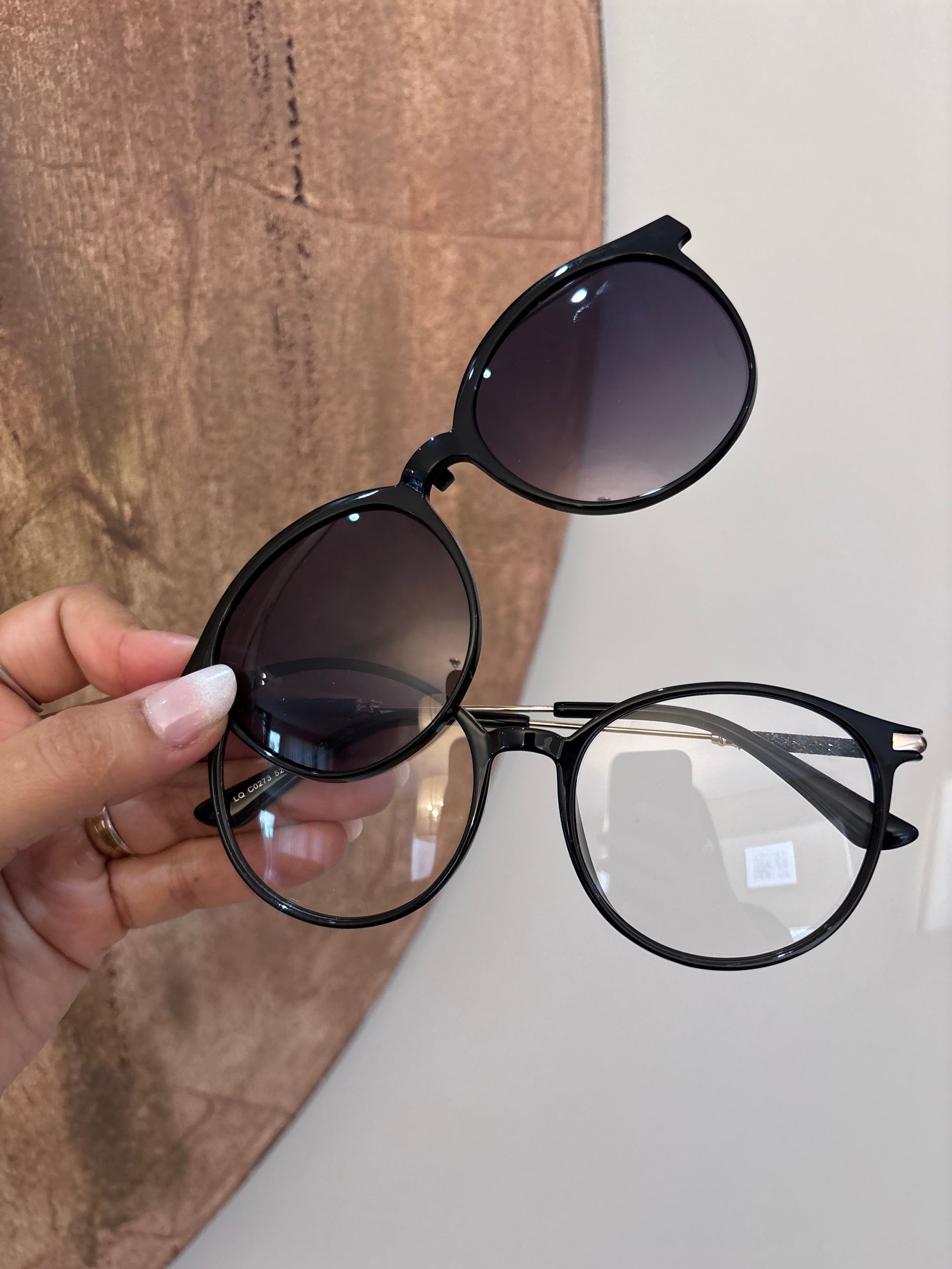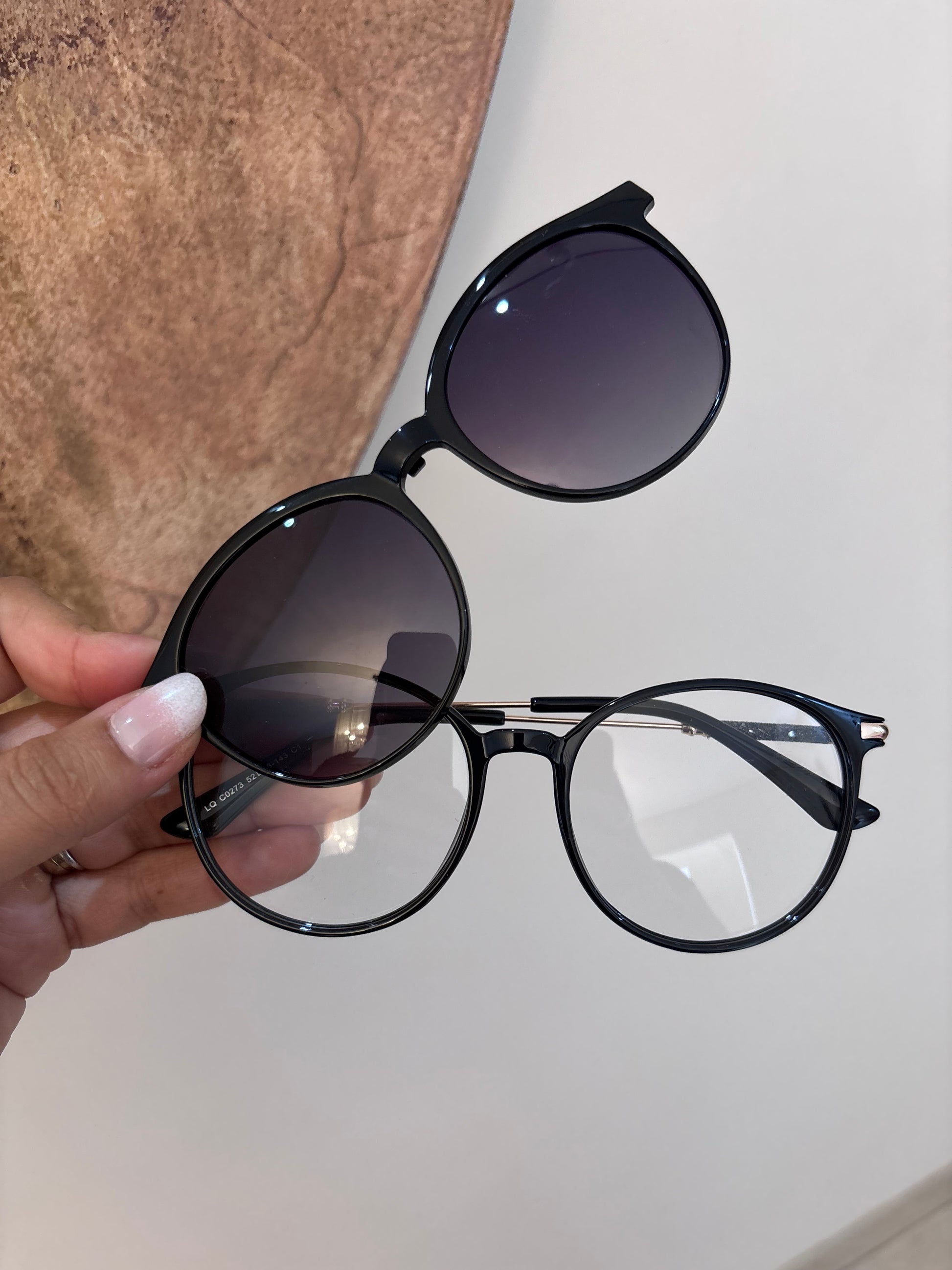Armação para grau, acompanha lente solar removível com proteção UV400.